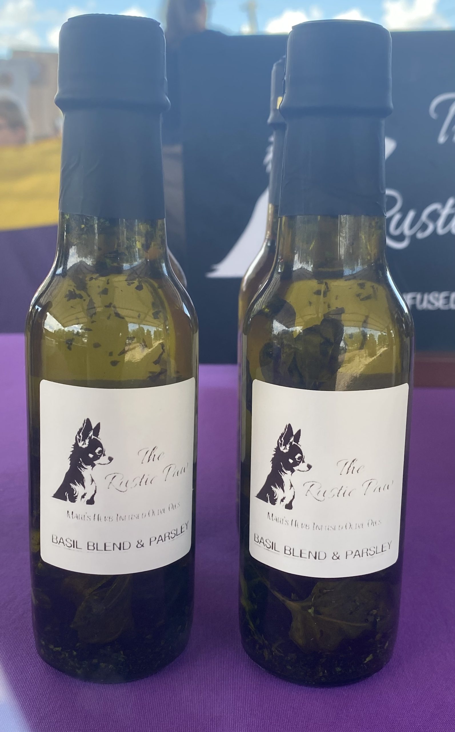 With a logo that pays homage to one of Crystal’s chihuahuas, Maui, The Rustic Paw offers several varieties of infused oils. Currently in stock are: 5-oz bottles of sweet basil and parsley, the trio of basil and parsley, oregano blend and parsley, German thyme and parsley, rosemary and parsley, and a basil blend. Customers can also purchase 2-oz bottles of sweet basil as well as rosemary olive oil.